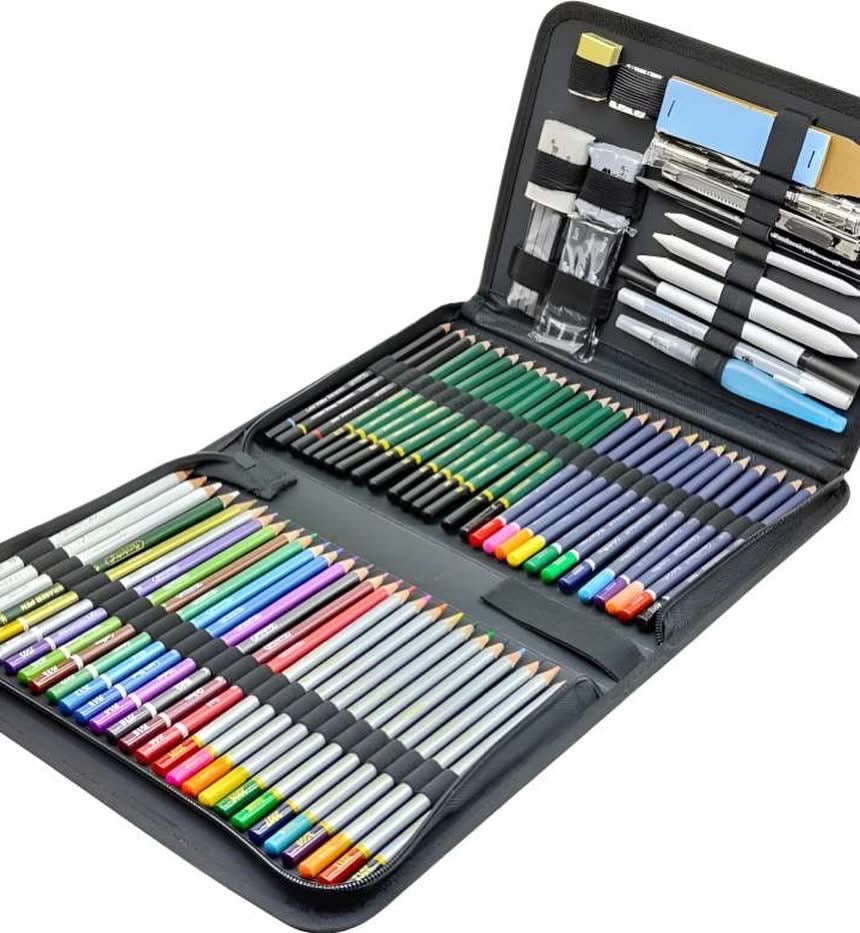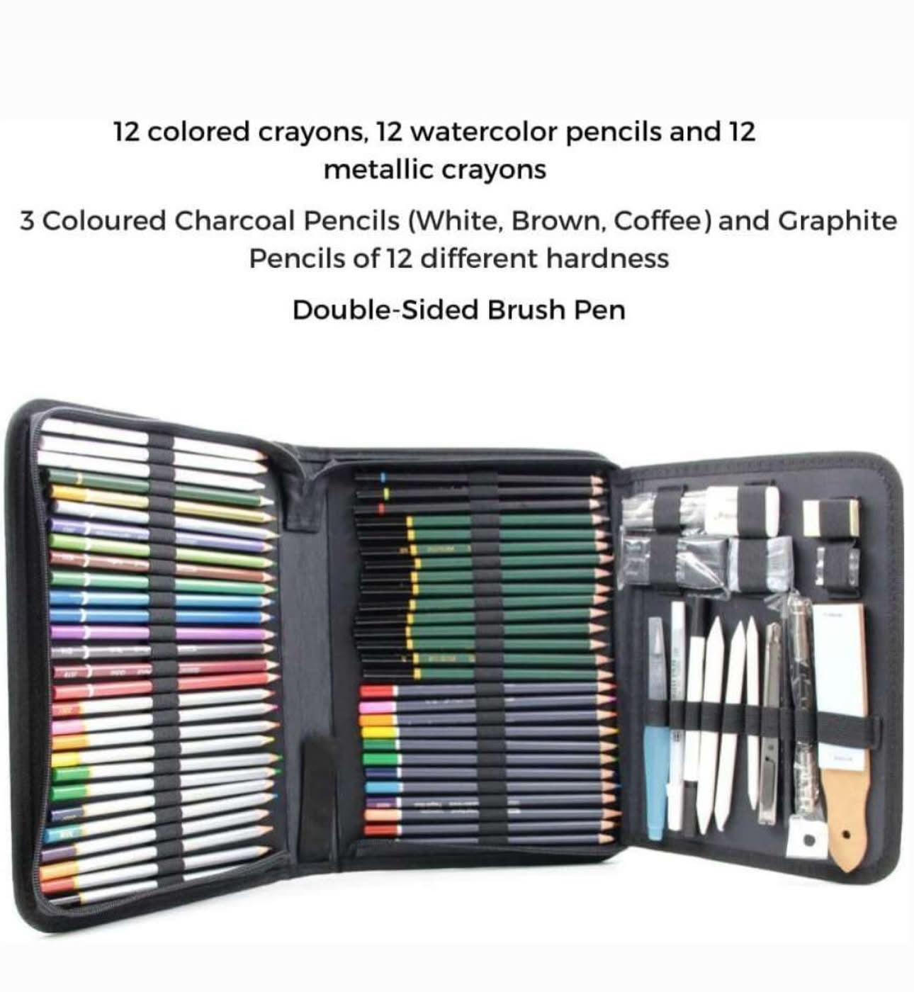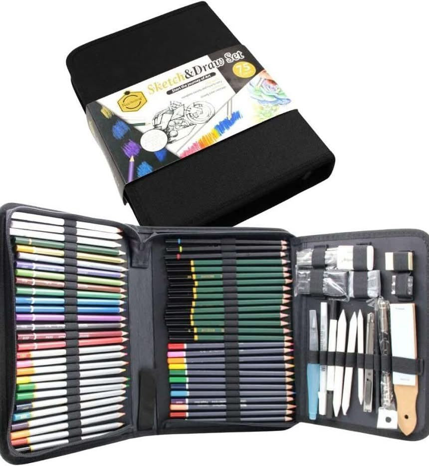 مجموعة أدوات الرسم والتلوين الاحترافية تتكون من 75 قطعة شاملة شاملة